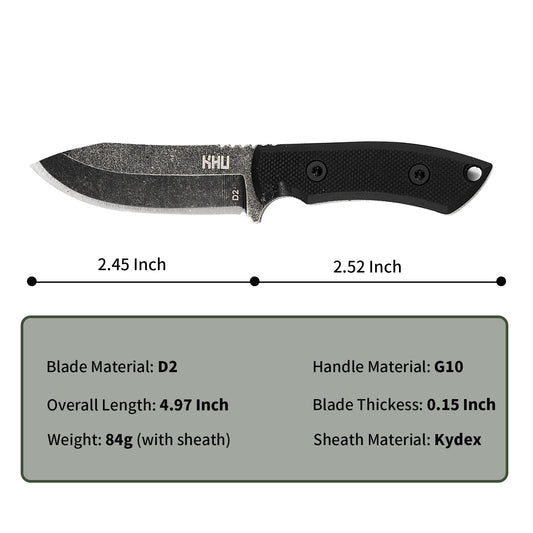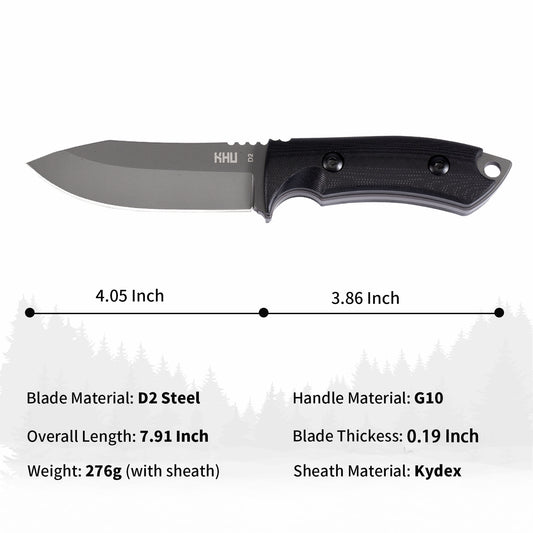 D2 steel blade is Razor Sharp and Good Toughness. High Hardness, Fine Cutting Edge, and Very Sharp. The Handle Is CNC Processed By G10, Which Is Firm And Durable. Accord with human body engineering for superior hand control, agility, and comfort. It is insulation, good abrasion resistance, moisture proof, anti-slip.
