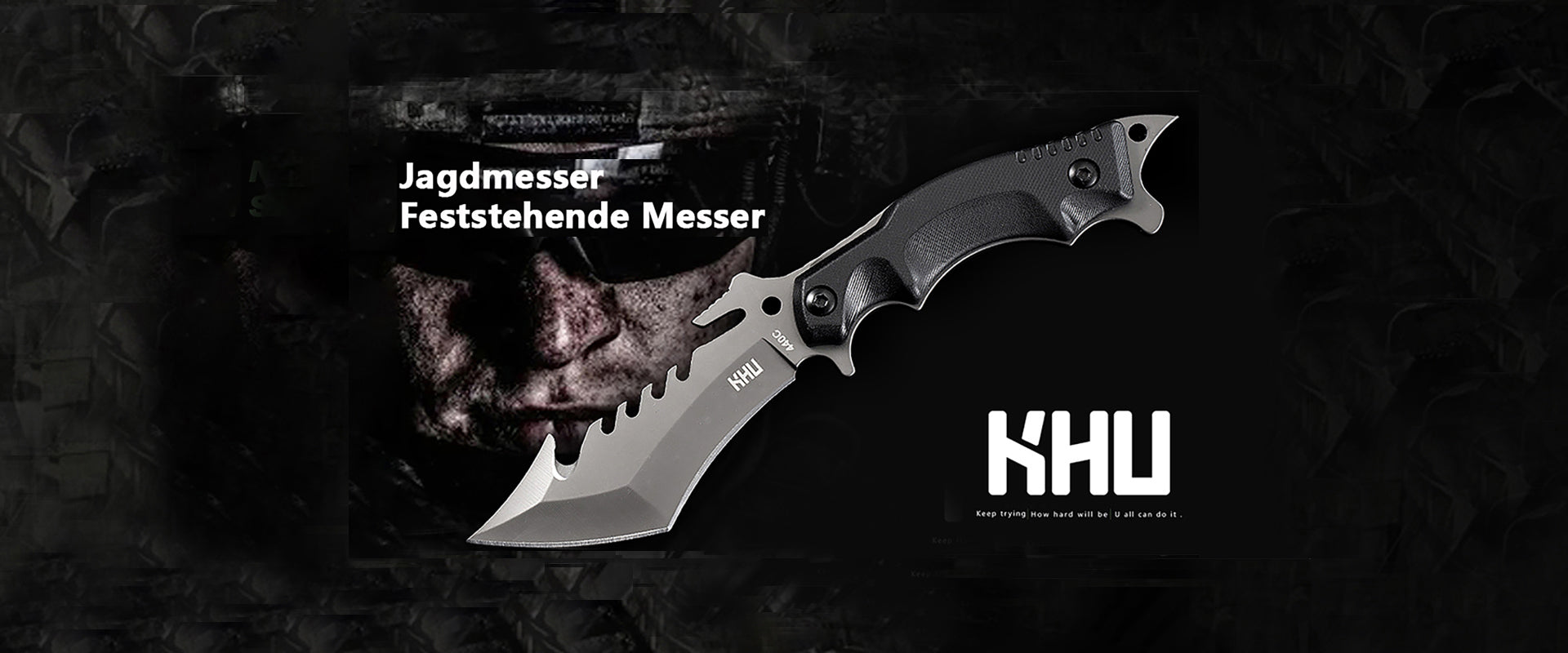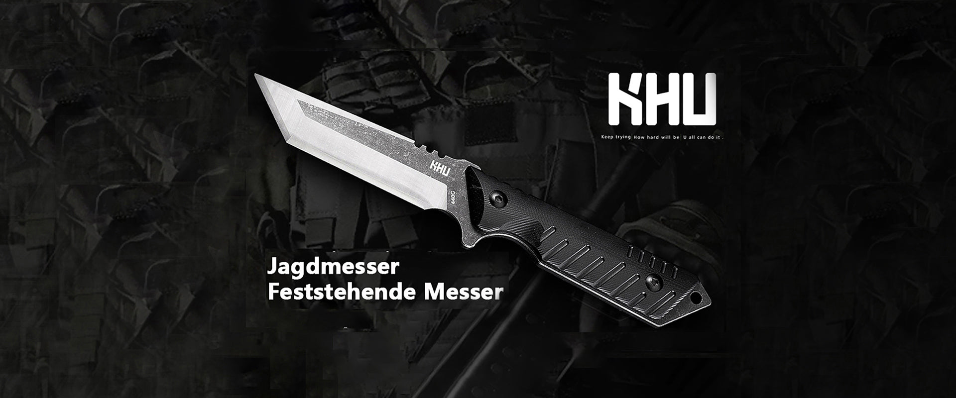 KHU Outdoor Messer Feststehende Klinge Survival Messer Jagdmesser Bushcraft Messer Camping Messer - 420HC Stahl, Nylon-Kunststoff Griff, Outdoor Jagd Camping Wandern - Kydex Scheide