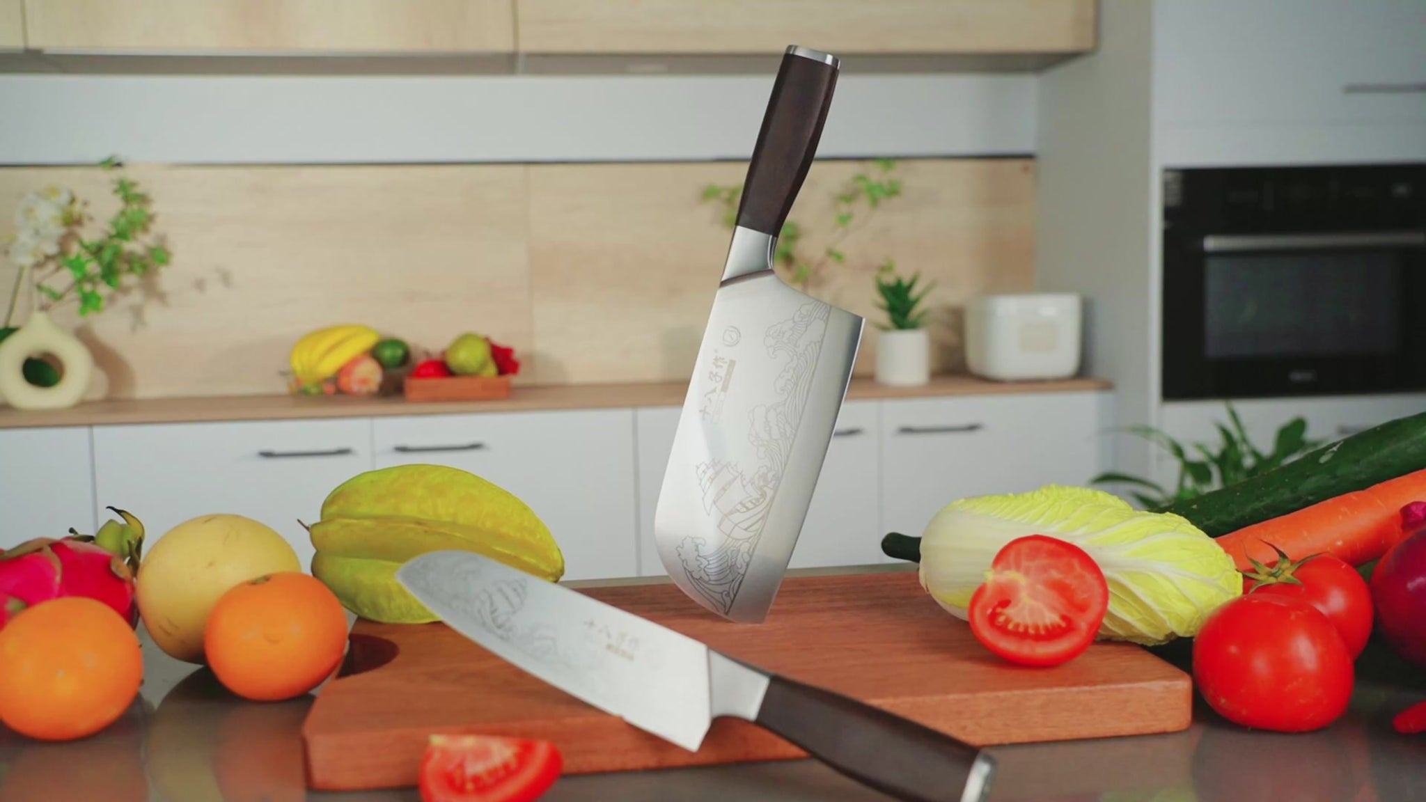 - Professional Knife Set - This kitchen knife set includes 2 razor-sharp knives: a cleaver knife and a santoku knife.Whether you're slicing meat,vegetables,dicing herbs,or prepping fruits, each kitchen knife of this set is designed to handle a variety of tasks effortlessly. Perfect for both professional chefs and home cooking enthusiasts.