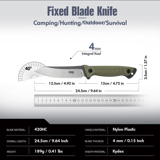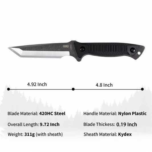 KHU Fixed Blade Knife Tactical, Hunting Knife Survival Knife 420HC Steel Nylon Plastic Handle, Outdoor Hunting Camping Accessories Camping Gear With Kydex Sheath