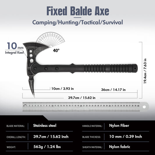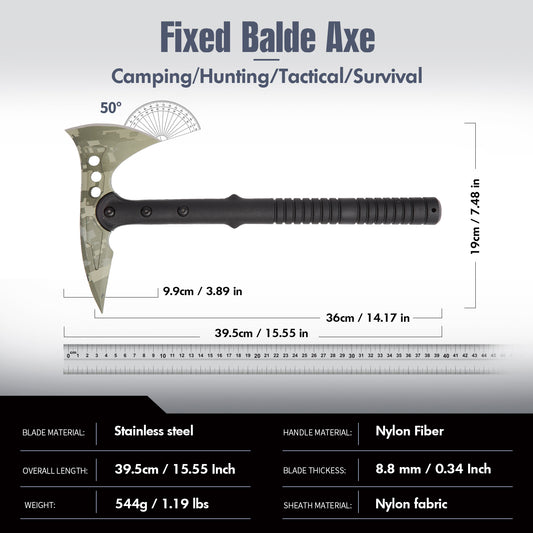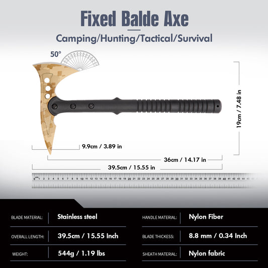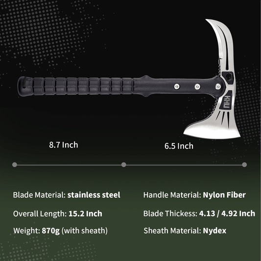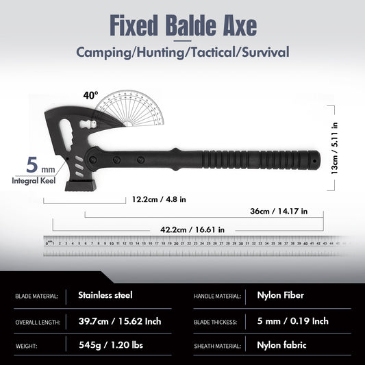 Our Axe is made with high-quality stainless steel blade and a sturdy nylon fiber handle, ensuring long-lasting durability for all your camping and survival needs.