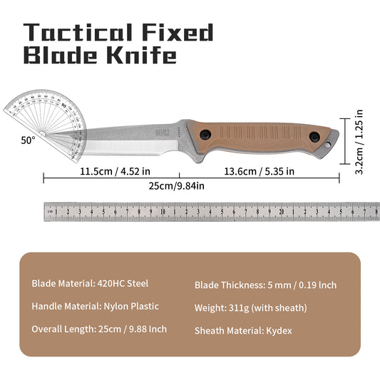KHU Fixed Blade Knife Tactical, Hunting Knife Survival Knife 420HC Steel Nylon Plastic Handle, Outdoor Hunting Camping Accessories Camping Gear With Kydex Sheath - 23A