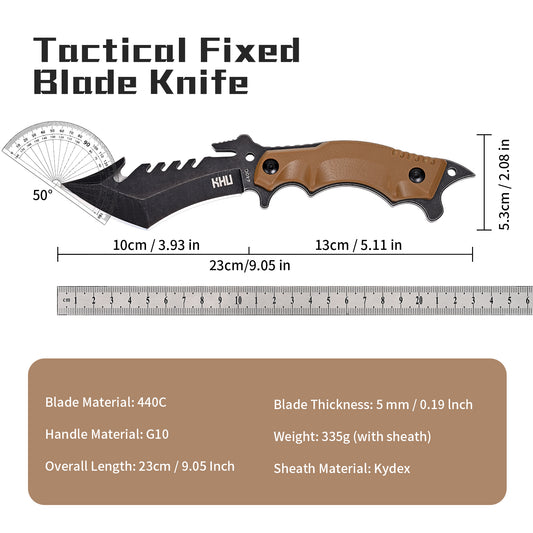 KHU Cuchillo Hoja Fija, Cuchillo Supervivencia Cuchillo Caza Cuchillo Bushcraft 440C Acero Mango de G10, Outdoor Caza Camping Accesorios - Funda Kydex