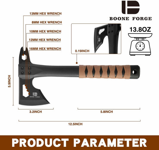 La nostra ascia è realizzata con una lama in acciaio inossidabile di alta qualità e un robusto manico in fibra di nylon, che garantisce una lunga durata per tutte le vostre esigenze di campeggio e sopravvivenza.