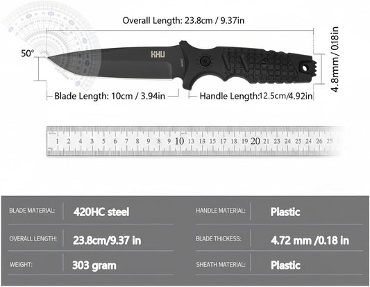 KHU Fixed Blade Knife Hunting Knife Survival 420HC Steel Plastic Handle, Outdoor Hunting Camping Accessories Camping Gear With Kydex Sheath (Black 36A)