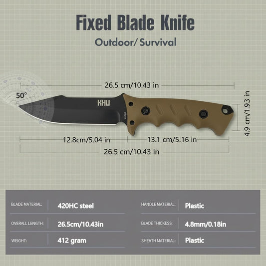 KHU Fixed Blade Knife Hunting Knife Survival 420HC Steel Plastic Handle, Outdoor Hunting Camping Accessories Camping Gear With Kydex Sheath (Tan 35A)