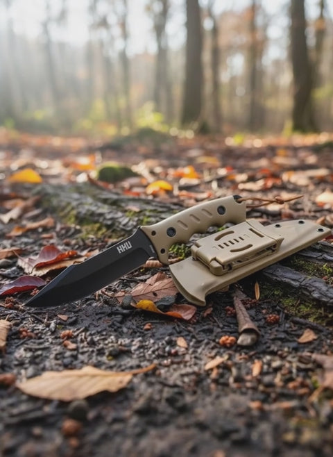 KHU Fixed Blade Knife Hunting Knife Survival 420HC Steel Plastic Handle, Outdoor Hunting Camping Accessories Camping Gear With Kydex Sheath (Tan 35A)