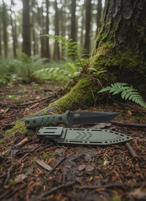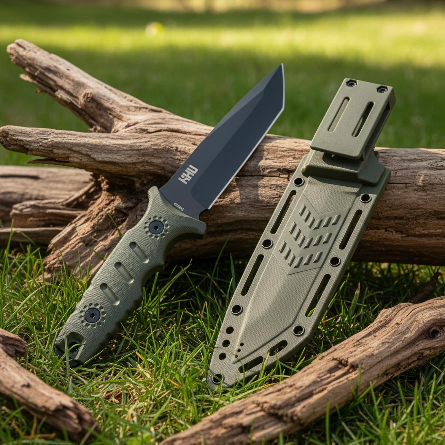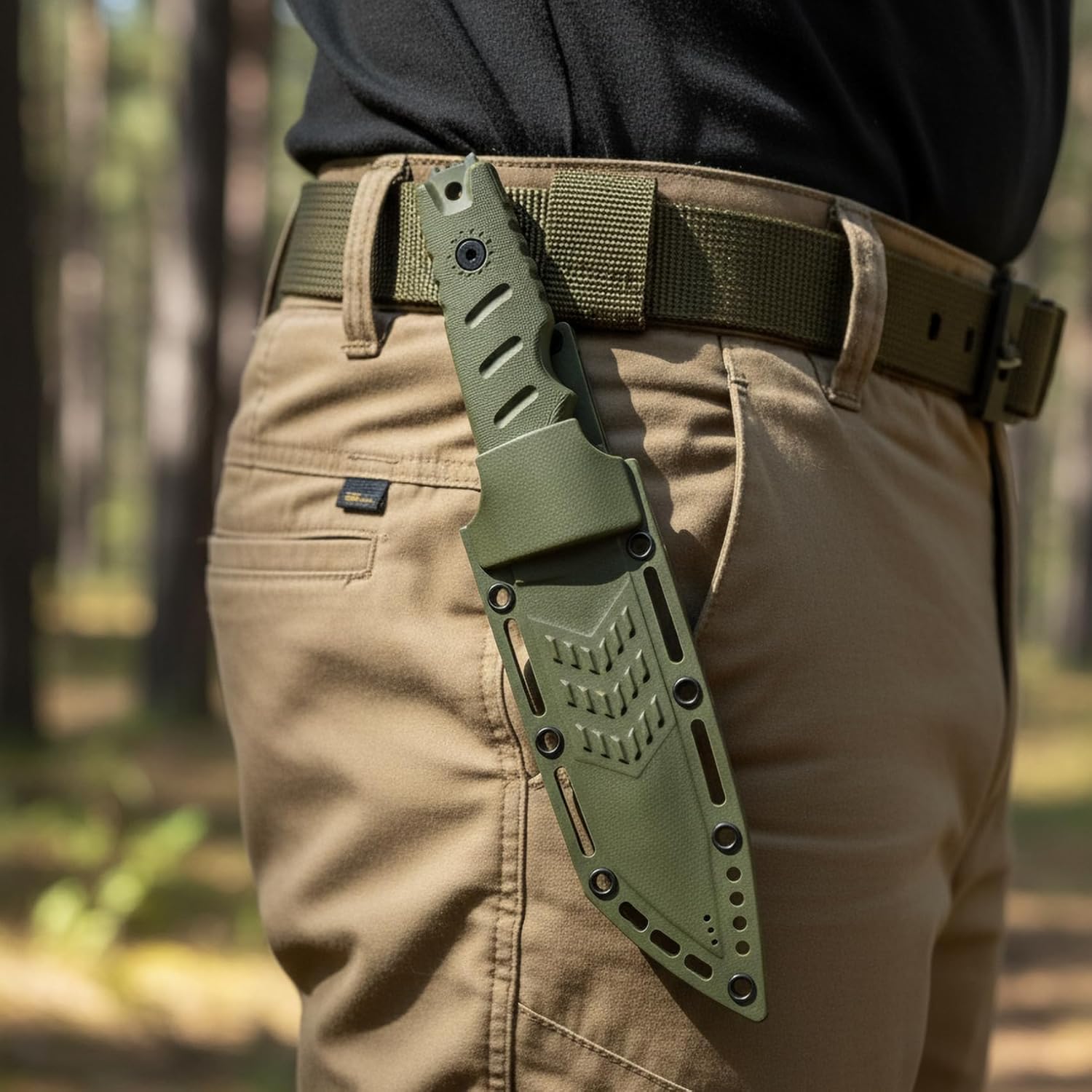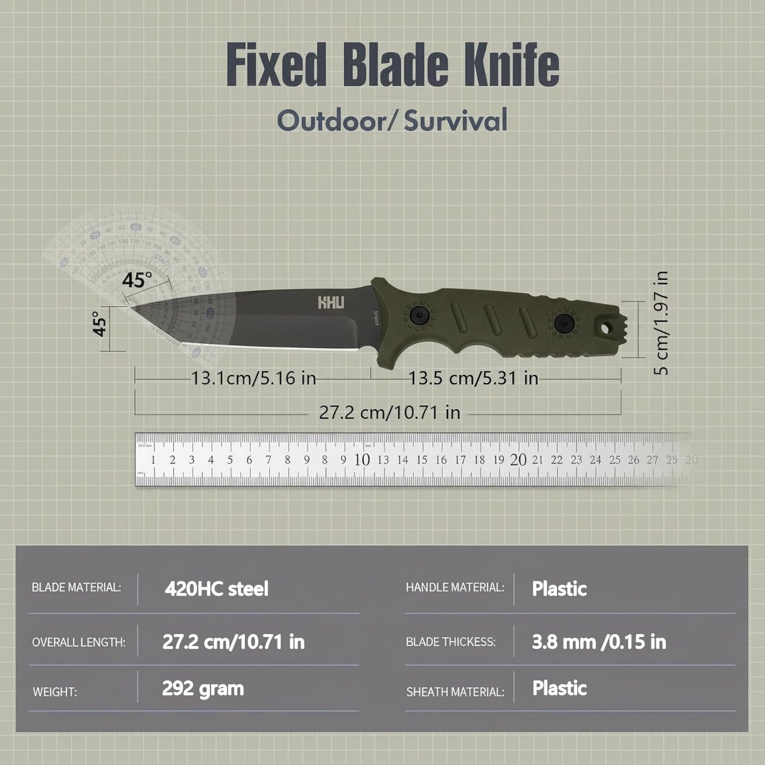 KHU Fixed Blade Knife Hunting Knife Survival 420HC Steel Plastic Handle, Outdoor Hunting Camping Accessories Camping Gear With Kydex Sheath (Green 34A)